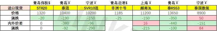2.内外:人民币对产区货币偏弱,利多内盘定价。乳胶进口利润改善,其他胶种变化不大。NR-SICOM震荡为主。