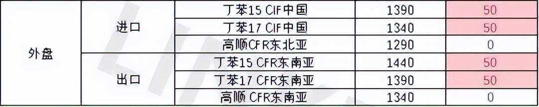 丁苯:宜邦、兰化维持检修,吉化维持低负荷运行。