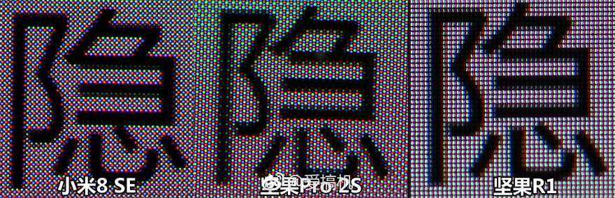 PPI接近的R1与Pro2S用的是同一张图片,它们可以直接对比像素数目。而小米8SE这边的PPI要高20,无法直接对比显示密度;