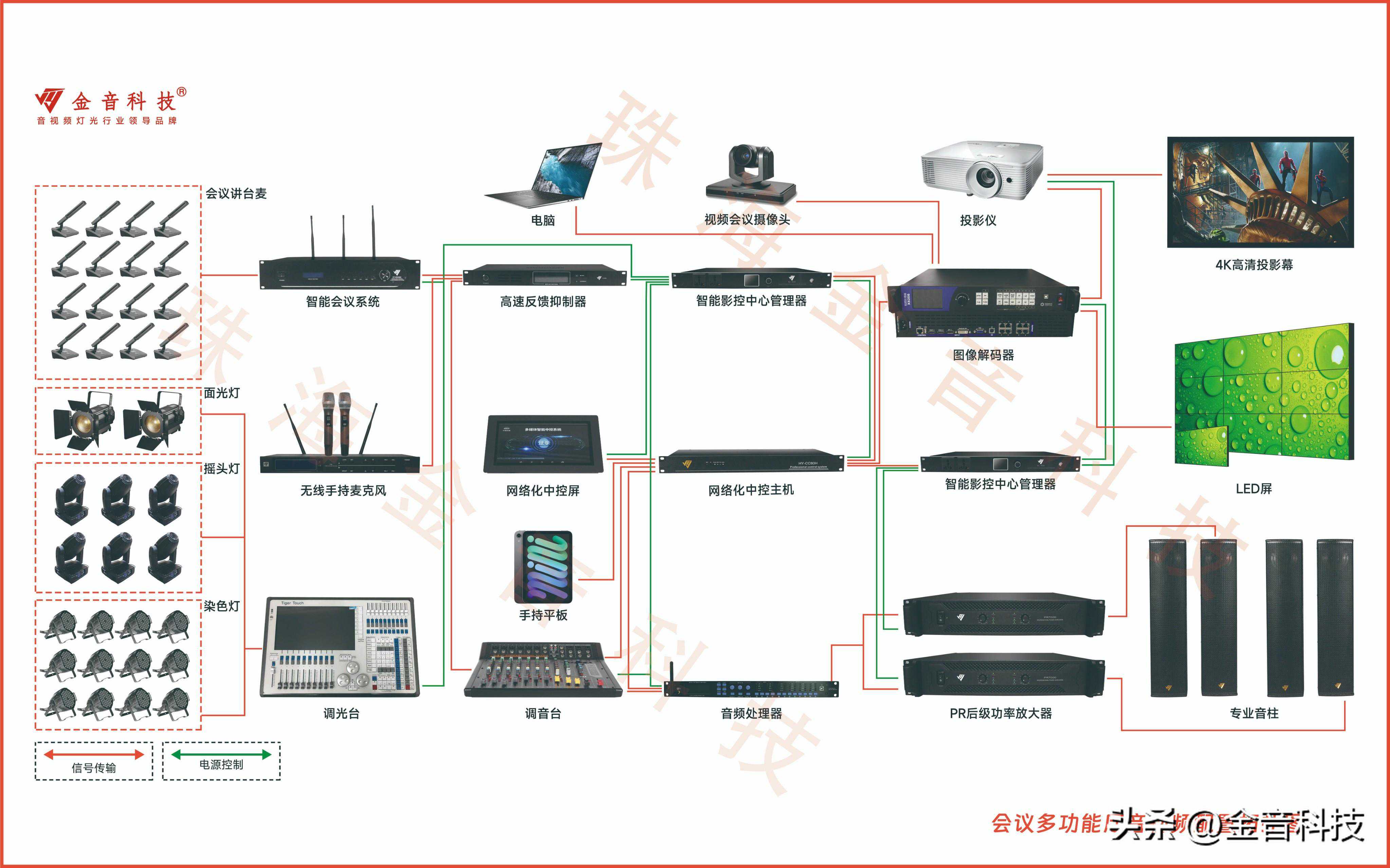 接下来以金音电子科技的专业音响系统为例,介绍大型会议室音响系统的常用组成部分:
