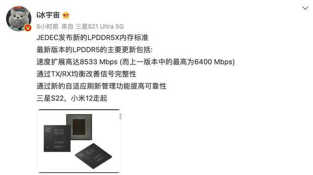 中关村在线消息:今日JEDEC固态技术协会今天正式发布JESD209-5B标准及低功耗的LPDDR5X。而据博主@i冰宇宙的爆料显示,小米12以及三星GalaxyS22系列手机都将会搭载LPDDR5X这种全新的内存规格。