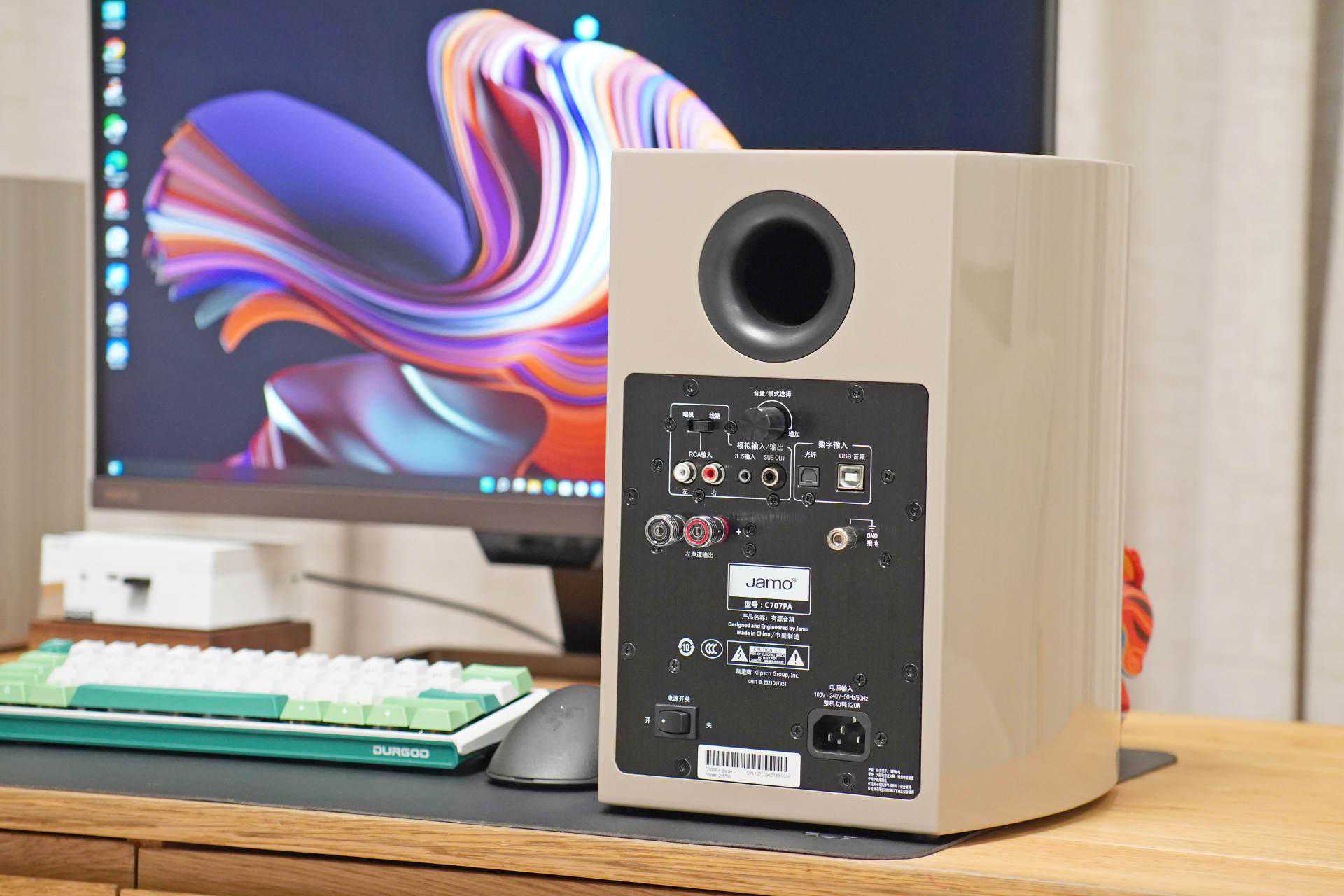而这一套桌面HiFi系统,其核心就在于这对Jamo尊宝C707PAHiFi有源音箱,这对音箱集成了蓝牙音箱+功放+唱放+解码器+USB-DAC的功能,替代了我之前折腾的那一大堆设备的所有功能,关键的一点是,这对音箱的音质,同样能满足我对桌面HiFi系统的要求。
