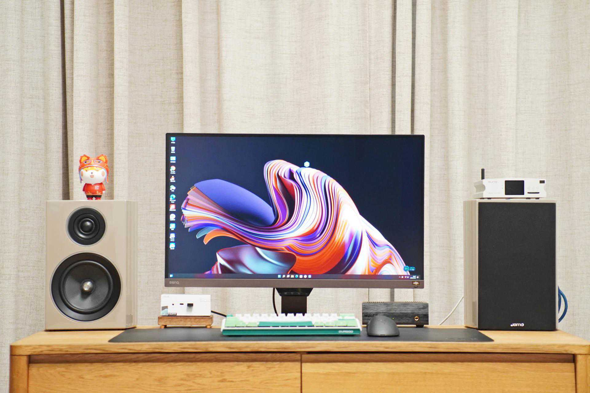 比如,我现在的这个样子,应该算是比较简约了,一台小电脑主机,一对有源音箱,一台流媒体播放器,就能组成一套完整的桌面HiFi系统,其实,完全还可以更精简一点,去掉流媒体播放器,也足够满足我的使用需求了。