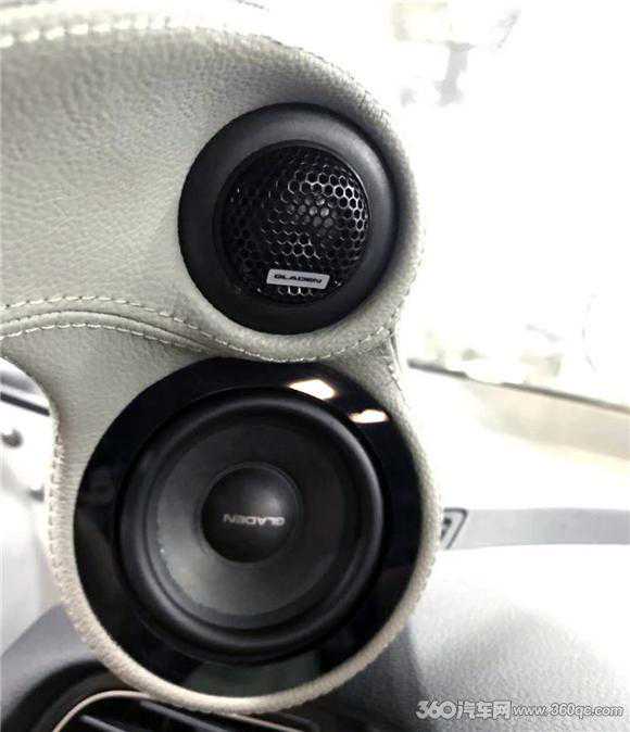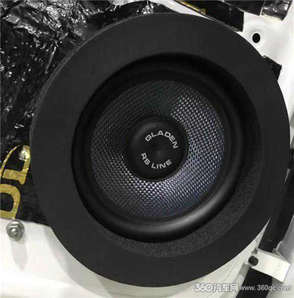 中低音喇叭安装在车门原喇叭位,喇叭加装了丽音圈,让中低频声音更为聚拢,与高音和中音喇叭有更为一致的指向性,各个音频段能够有更好的衔接配合。