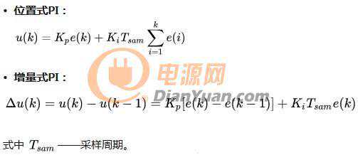 位置式PI的u(k)就是输出量可以直接进行PWM转换,增量式PI的△u(k)要累加运算后再进行PWM转换。e(k)是设定量与被控量之差,△e(k)=e(k)-e(k-1)可以看做是对e(k)求导(既e(k)’的量化,累加可以看做是积分运算的量化。