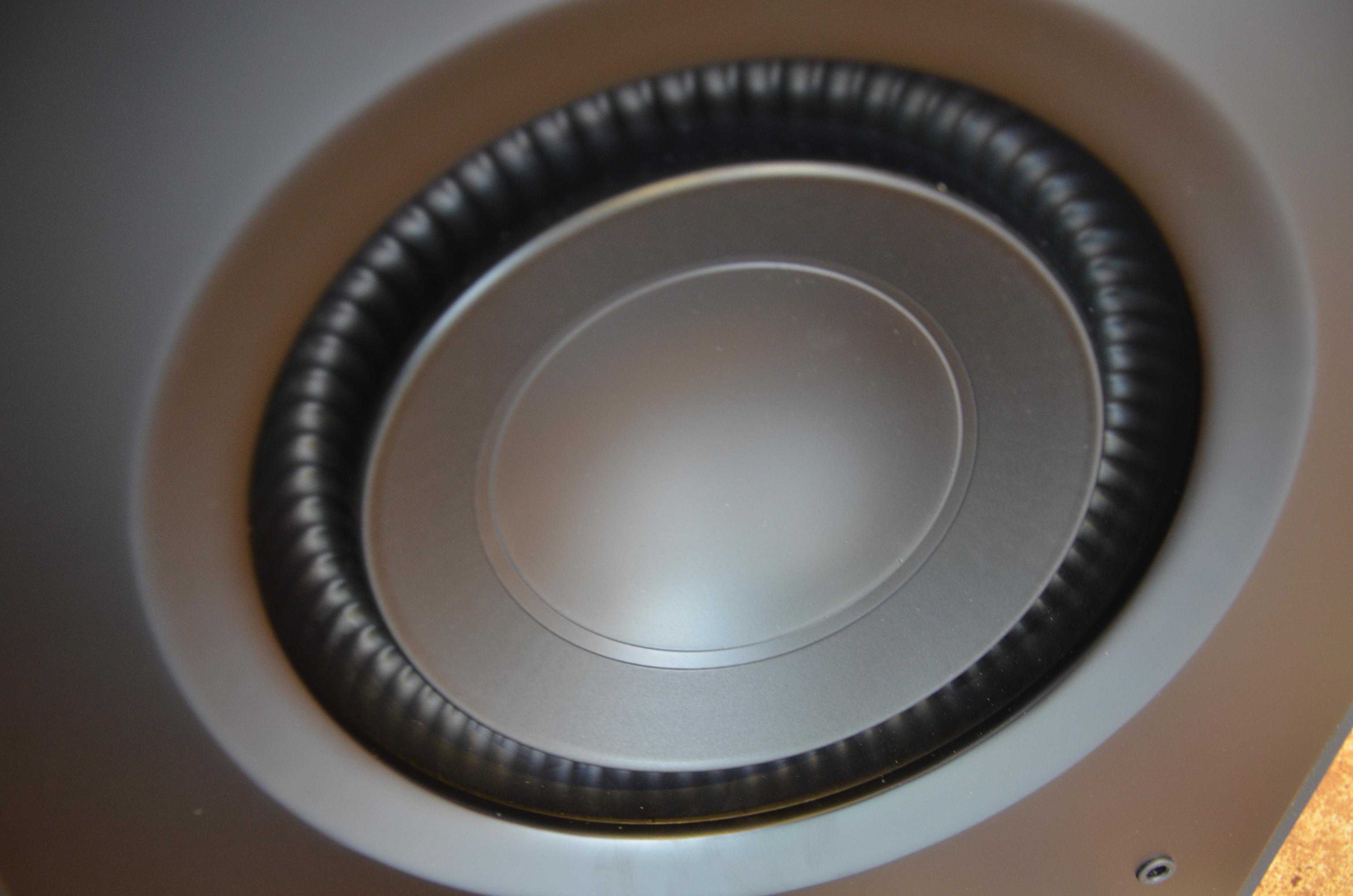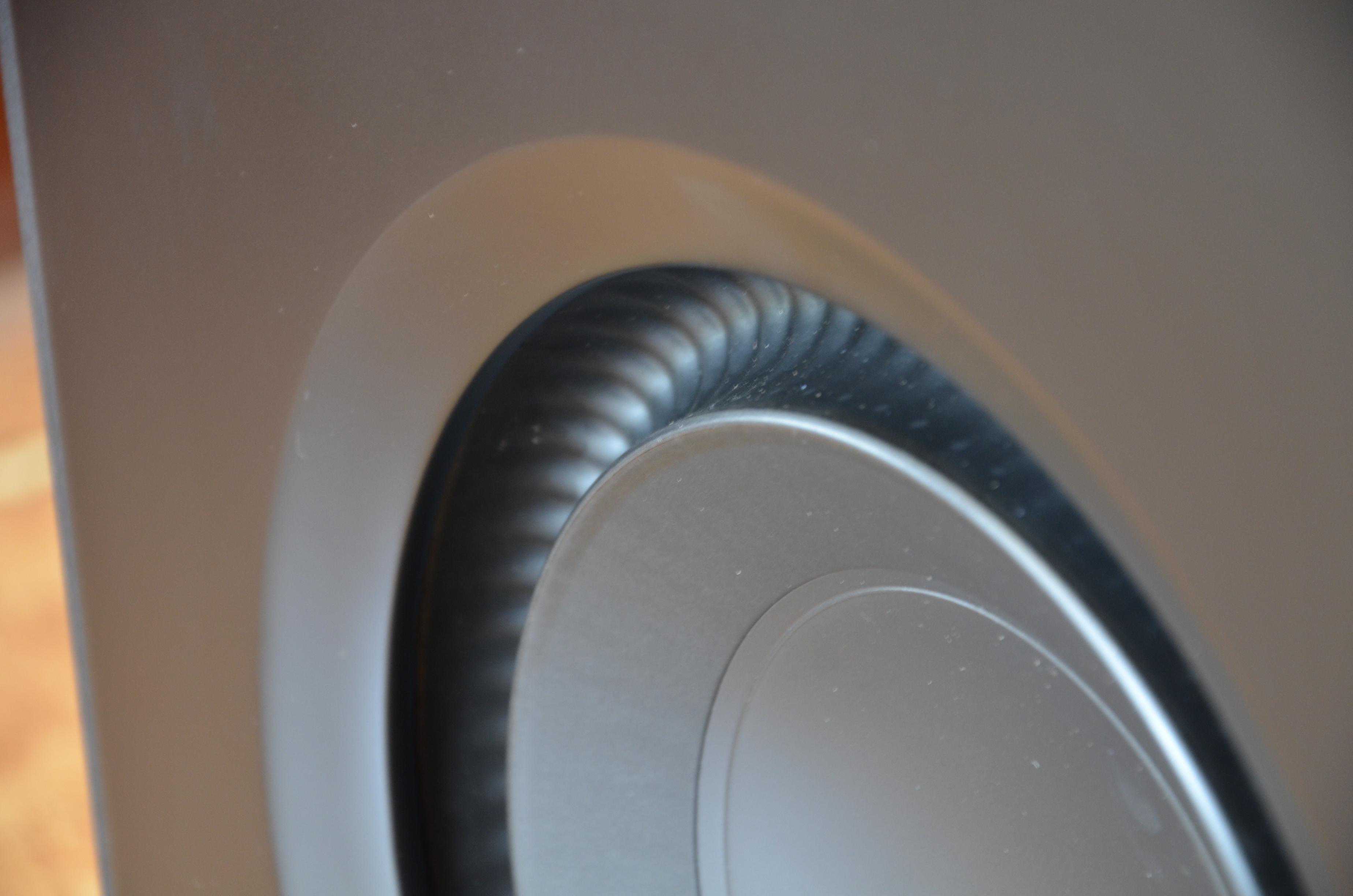 瞧,真身亮相,通体黑色的外观看上去就很沉稳,高音单元和中音单元都被保护起来了,这可是Paradigm独有的穿孔相位对准(PPA)技术,不仅好看,还能保护单元,同时还可以让声音更为平滑,减少音染。图中可以看到中低音单元全部采用专利的ART技术(就是单元周围的波浪形折环),这个技术可以让单体更大幅度的前后运动,让输出增加3DB,失真降低50%之多。