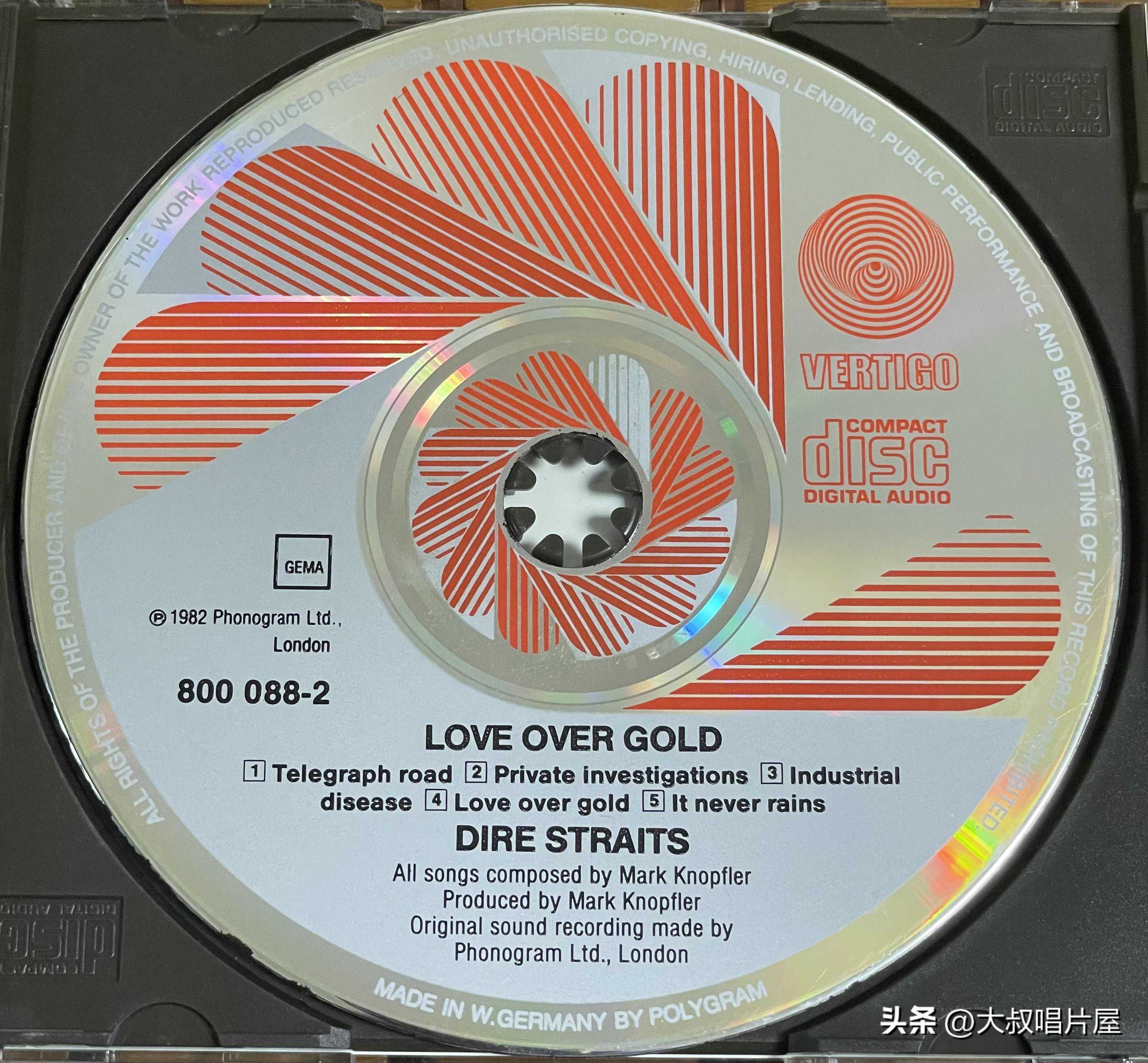 33、DireStraits–LoveOverGold唱片编号:Vertigo/800088-2收藏版本:1984年德版(西德大红花无字银圈)