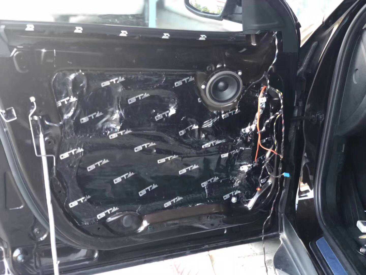 首先对宝马X4的车门进行清理原厂的防潮薄膜和钣金胶,并张贴止震贴来强化钣金保证了车门内部能够有效隔音!重新整理线槽,根据扬声器合理布置线路,以免出现用电安全!