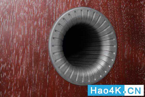 在Gold300的背后,有两个DualHiVeII低音反射孔,在低音导管内缘,有特殊的纹路设计,藉此引导气流快速通过,降低气流噪讯。