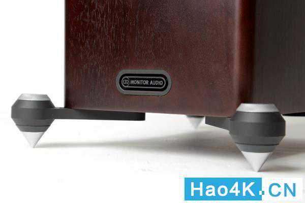 MonitorAudio随附金属尖锥与软质塑胶脚垫,如果您家的地板怕刮,用塑胶脚垫就不会有刮地板的问题,但我大多习惯使用金属尖锥,低频可以更乾净快速,反正U-Audio的试听室用的是仿木地板,金属尖锥早就在地板上扎出很多小洞,Gold300多扎几个洞没差。