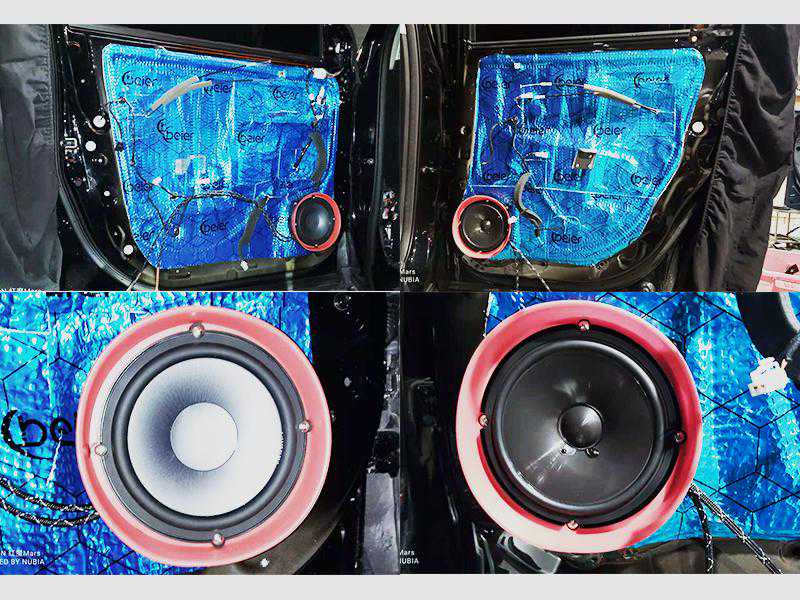 第二层依旧是贝尔的隔音蓝膜,连接后线路后,在车门的外围做隔音封密。让更多的声音留在车内。增加声音的回响。