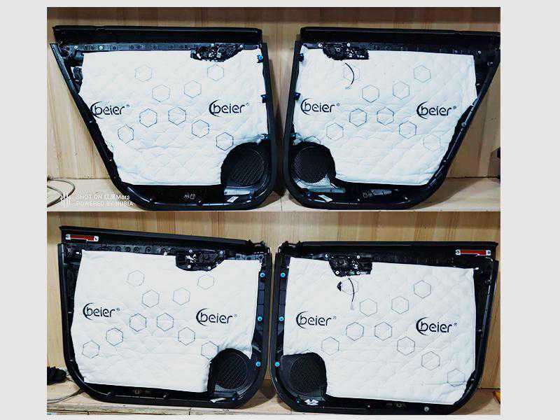 第三层我们使用贝尔的吸音棉附在车门的外壁。这个操作也是为了知道一个更好的隔音效果,更加有利于声音在车内形成循环。