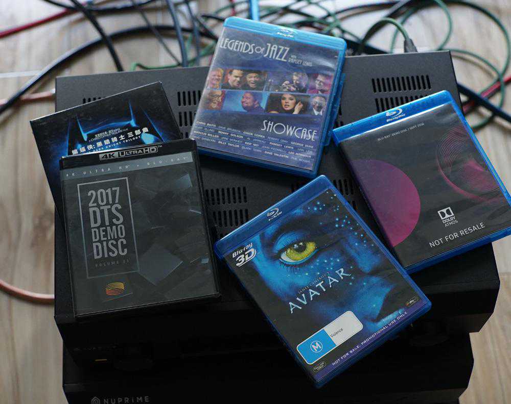 随后,我找出了一些常用的试机碟进行对比,这包括了《阿凡达》《蝙蝠侠三部曲》,以及DTS和杜比的测试碟。