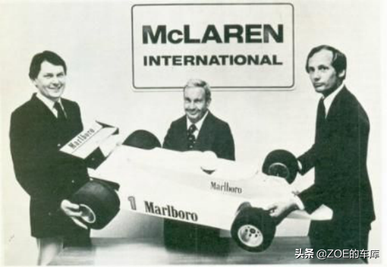 图:1980年9月,在PhilipMorris菲利普莫里斯公司(万宝路)一手策划下,麦拿伦车队与罗.丹尼斯创办的ProjectFourRacing车队合并,所以直至今天,麦拿伦的赛车均被命名为MP4前缀,意思就是McLarenProject4的意思。图中右边的是罗.丹尼斯,左边的是英国人JohnBarnard(约翰.巴纳德),此君是世界顶级赛车设计师,他将碳纤维技术引入了一级方程式,并由麦拿伦车队率先使用;另外一项则是半自动变速箱技术,则于1989年的法拉利车队率先应用。
