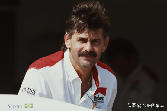 图:1982年泰迪离开公司,由罗.丹尼斯接管,在万宝路这个赞助商的支持下,麦拿伦车队可谓是如日中天,1984年与保时捷合作的MP4/2赛车全年16站赢了12场、1988年与本田合作的MP4/4赛车在16站里赢了15站,而冼拿也是在这年以3分的优势领先队友保鲁斯、首次夺得车手年度总冠军。