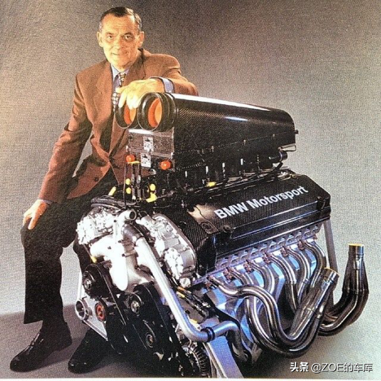 图:这位就是宝马MGmbH的引擎工程师PaulRosche(保罗.罗什)跟他一手调校的S70/2引擎一起。