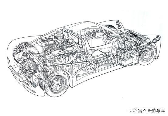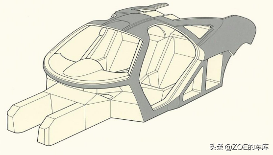 图:这就是整个McLarenF1的车架,完全采用碳纤维制作,这也导致了后来的几乎所有能将自己称作是超跑的,都使用这种工艺制作车架,也由此成为了“超跑的标准”,而目前市面很多只使用铝合金管材的车架V8-MR,就别动不动称自己是超跑了。