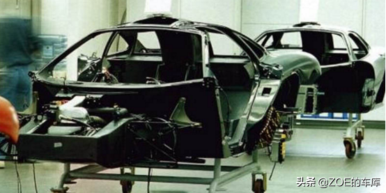 图:汽车工业术语里面有个名字叫“白车身”,就是那些没经过电泳前的全钢板车体,那如果放在眼前的McLarenF1的车架前,是不是应该改称“黑车身”呢?