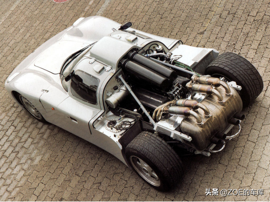 图:XP4其实已经无限接近量产版了,不过它主要用于测试Wiesmann六前速手动变速箱,毕竟它的变速箱摆放方式与当时市面上所有的中置引擎车型都不同,它的变速箱成90°垂直横置于引擎之后,变速箱两端就是传动半轴驱动后轮,离合器采用APRacing提供的三片式,专门用一辆原型车去测试也是合理的。