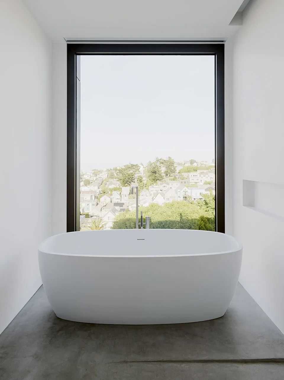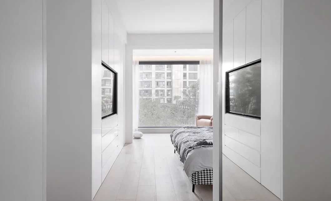 黑白元素的点缀最为经典,如钢琴黑白键般优雅,房间最佳的景观位,都留给了自我独处时刻,黑色窗框勾勒出流动变幻的风景,平淡无奇却触动人心。