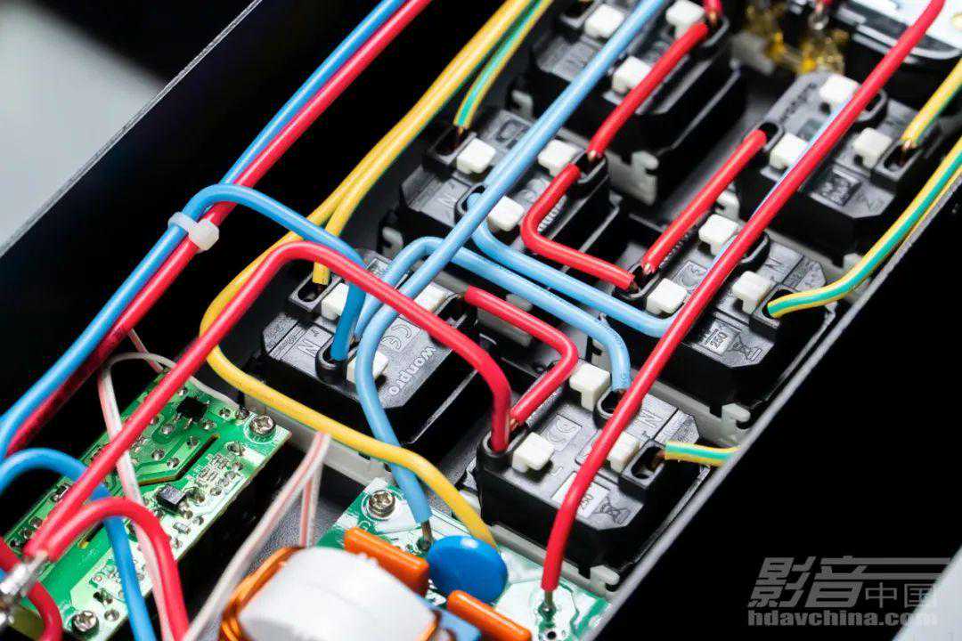 一台电源处理器好不好关键是看内部配置。当我将DK-186打开之后,机身内部构造一览无遗。首先就是它的走线非常规整,你可以清楚认清哪些部件进行连接,TW-DK186的内部连线采用4N无氧铜单芯铜线,并且使用的是镶合式焊接工艺,确保了连接的牢固和稳定性。采用纯铜镀金导电汇流排,汇流排使十个插座的地线回路汇集到一点,降低音响系统的噪声,提高音质。