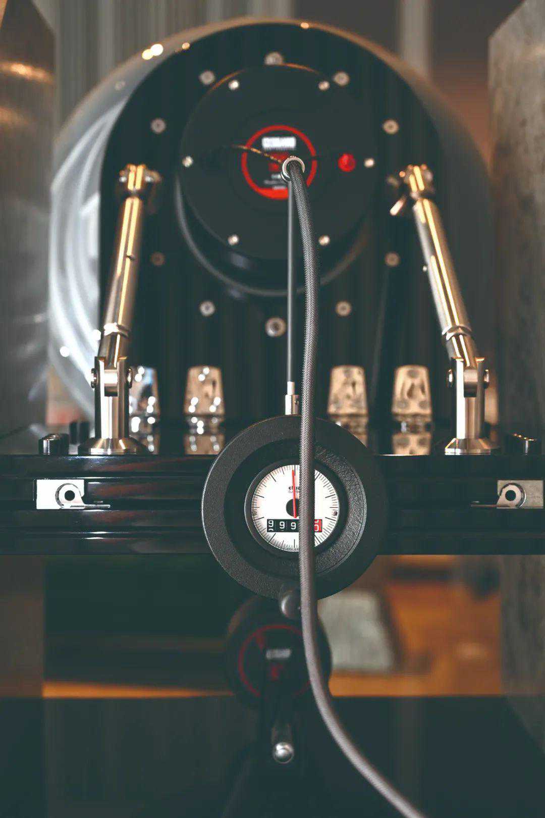 ★黄铜超高音号角是装在轨道上的,通过千分尺刻度做前后移动,可根据实际聆听距离做精确的相位调整。箱体背后能看到中音号角有金属杆支撑,这次的升级版还在螺杆扳手上设计了非常漂亮的类似超级跑车才有配置的表盘,这可不是用来装饰的,这也是Cessaro的奥秘之处,可以精确显示中音号角调整的上下俯仰角度和相位,德国人严谨的工匠精神不仅展现的看得到的地方,看不到的地方一样严谨,这已经是工业加艺术的升华了。