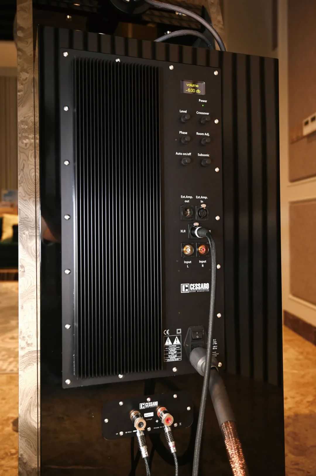 ★由上一代的三路三单元升级为四路四单元的,声音效果提升幅度巨大,除了动态范围更加宽广,灵敏度提高了3dB,达到了101dB。越来越多的高级音箱使用半主动式有源设计,也就是超低音有源,中高音无源设计,Cessaro可以说是走在业界前端的,而最新的第三代Alpha重新设计可根据环境空间精细微调电平、相位、分频点以及环境驻波的AB类功率放大器,由箱体背后的电子分频1200瓦AB类功放单独驱动,使其16英寸TADTL160A/B超低音单元轻松下潜到25Hz,远胜之前的产品。