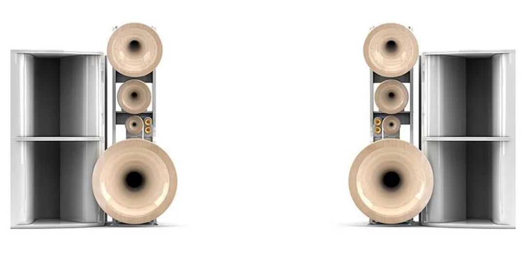 ★整个德国只有一家公司能够承接声场的精准塑性大尺寸复合材料号角,且颜色可以定制,目前只有Cessaro独家使用。直径58cm的超刚性金属铸模号角外壳内部填充液态金属阻尼材料消除谐振,配合自主研发的铍膜中音压缩驱动器,圆号角经过精准的设计能够做360°扩散,声音能量更加均匀,更接近现场的发声状态。
