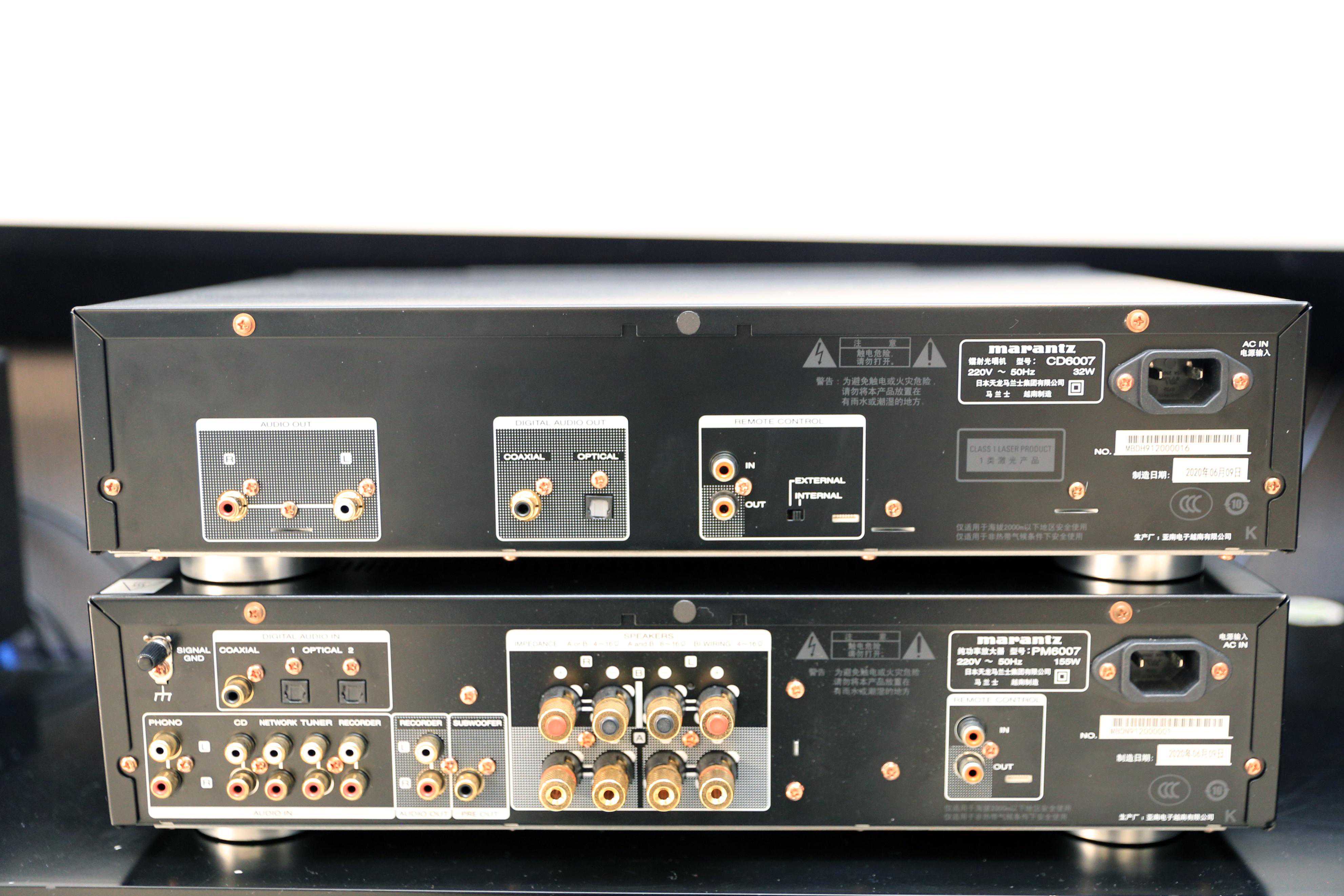 这次借到的606S2和马兰士PM6007的组合,算是半个官方推荐组合,606S2对功率的需求为30-120W,马兰士PM6007的功率输出为45W,还是比较搭配的,PM6007的功率输出能力并不弱,我上次拿来推我的杰士落地箱也没啥太大压力,音质也还比较有优势,能满足我的需求。