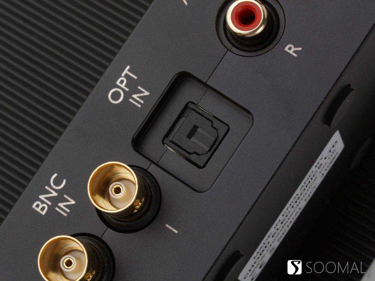 另外一个Input状态指示和切换按键,通过不同颜色显示USB、BNC、光纤的输入。