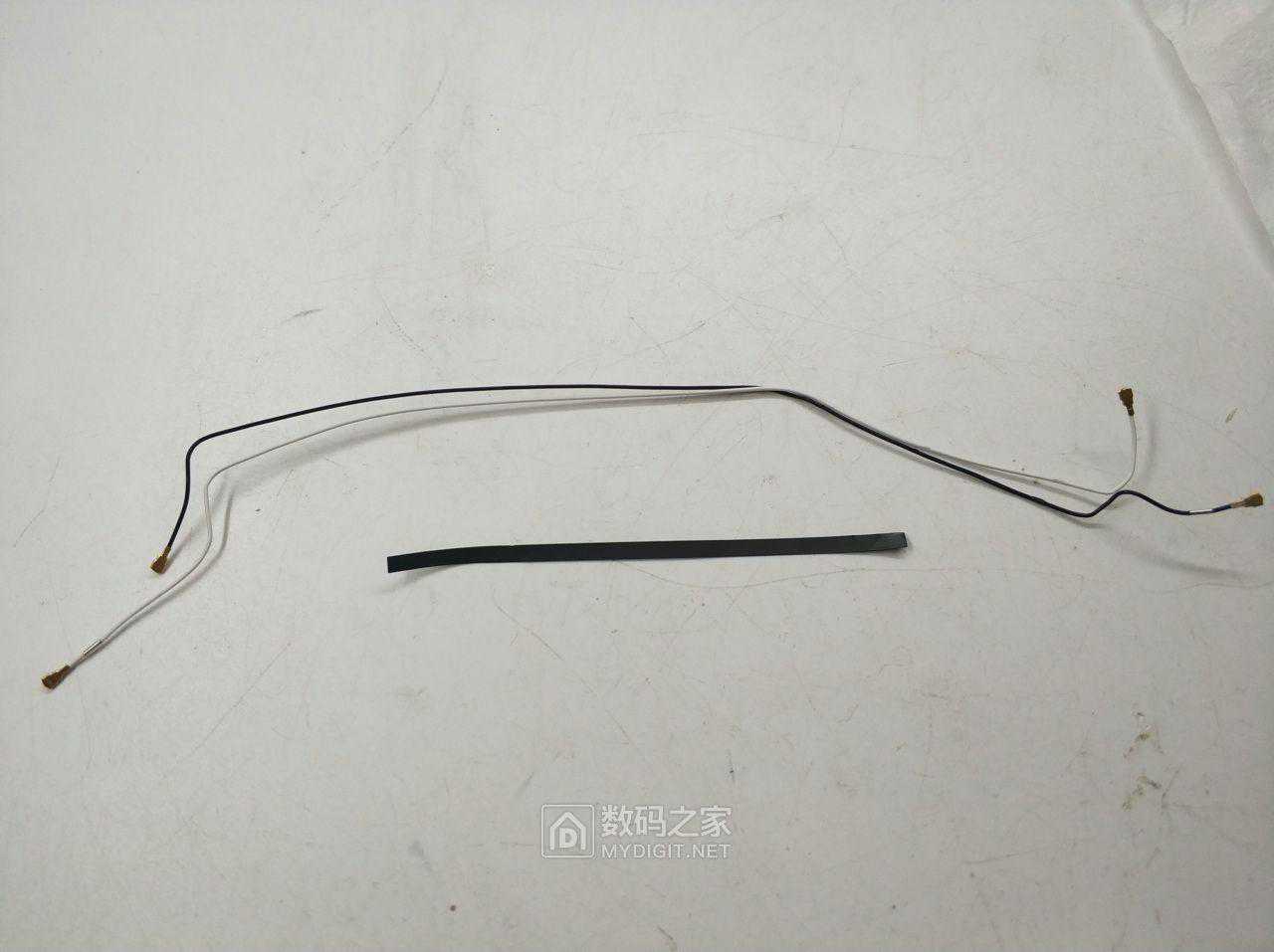 拆开可以看到里面还有一排线位,这个是显示屏排线,同时可以看到2根连接小板天线