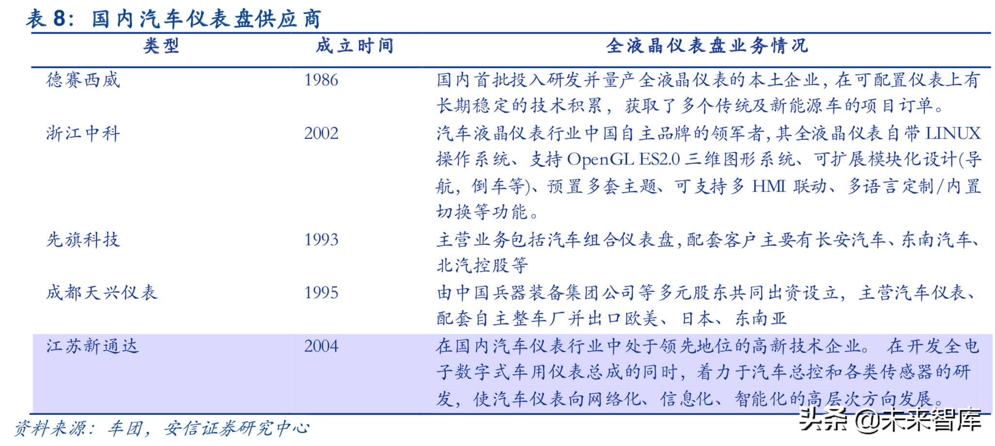国内液晶仪表盘供应商以德赛西威等公司为代表,目前在前装市场主要配套自主品牌,少数企业有部分出口。与中控屏、HUD等产品类似,新兴市场新能源乘用车的发展带动自主供应商液晶仪表盘产品放量,大陆、伟世通等合资品牌在国内传统车市场占据主要份额。