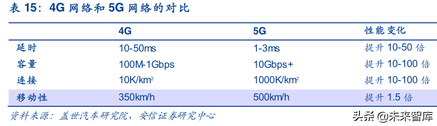 5G具有三大应用场景eMBB(增强型移动宽带)、mMTC(海量物联网连接)和URLLC(低延时高可靠通信)。其中,低延时高可靠应用场景的典型业务模式就是车联网。由于5G很好地解决了4G延迟高的问题,将响应时间从50毫秒减少到1-3毫秒,使反应速度提高了整整50倍,5G网络成熟商用后,车联网等实现跨越式发展。