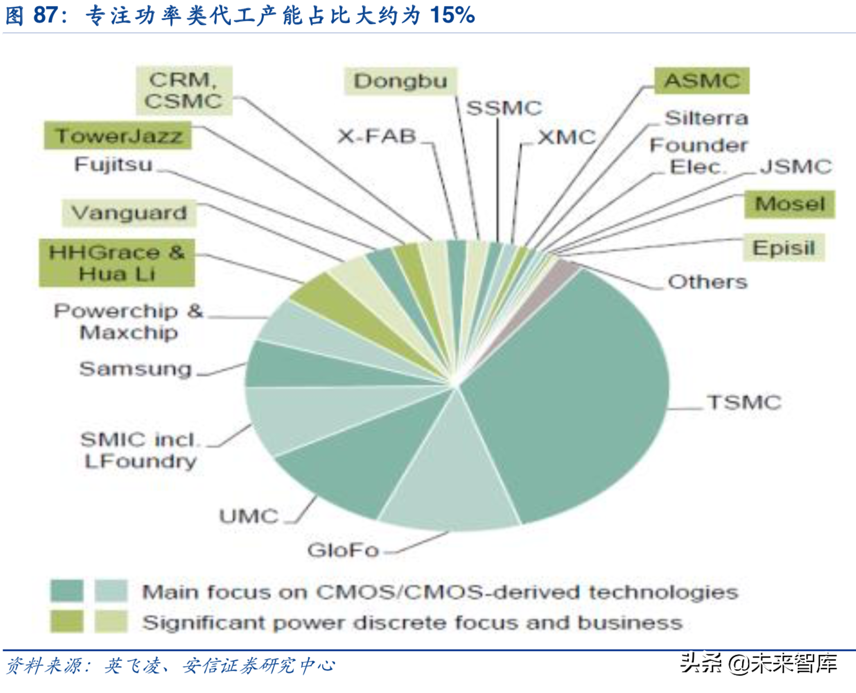 “新势力”切入,国内封装企业逐渐获份额:在FAB之外,还有封装。根据Yole最新报告,安靠和日月光目前占到80%的份额,但是也会有一些新势力会进入。长电科技收购星科金朋后,2017年在汽车封装领域占比大约为5%,太极实业苏州工厂主要以欧洲的客户为主,一直做车规级封装产品。根据我们产业链调研,通富微电在汽车电子业务的规模相对较大,率先切入新能源汽车行业领先客户,未来将依据公司的先发优势进一步拓展汽车电子产品。同时,华天科技也有规划上车规封装产线。预计随着FAB厂和封装厂的国产化支持,国内发展汽车半导体将有一定的产业基础。