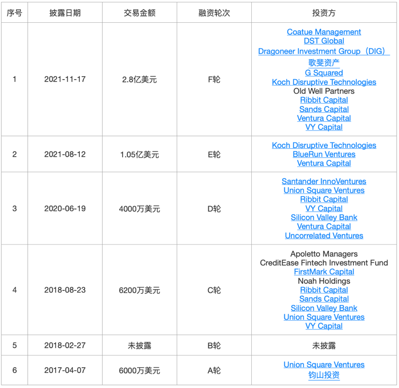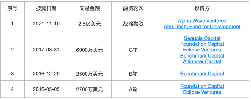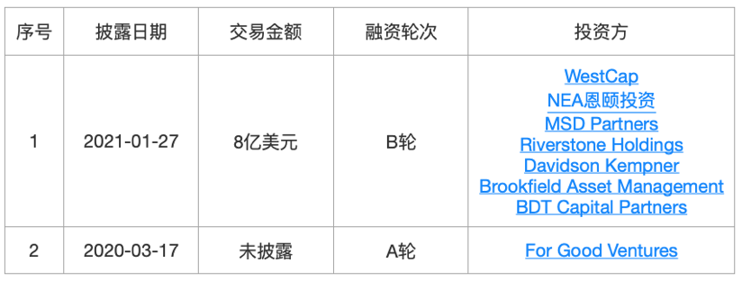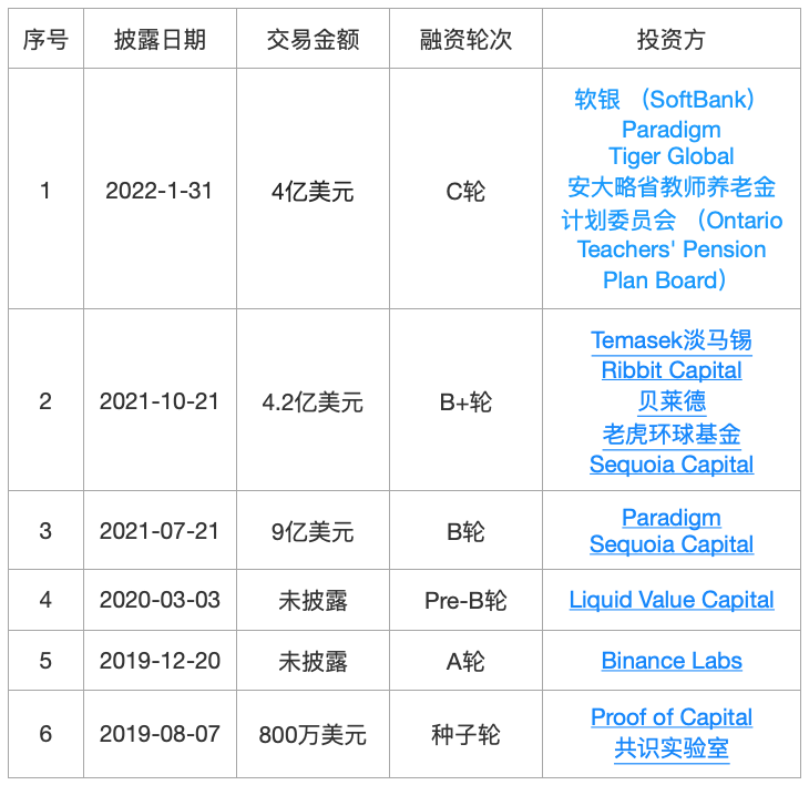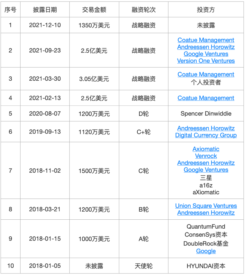 成立于2011年的加密货币交易所和金融服务公司,现在是世界上最大的加密货币公司之一,提供一系列基于区块链的金融服务,主要包括区块浏览器、加密货币钱包、交易所等。2022年3月,宣布完成了由LightspeedVenturePartners领投的新一轮融资,本轮未披露具体募资金额,但估值飙升至140亿美元。