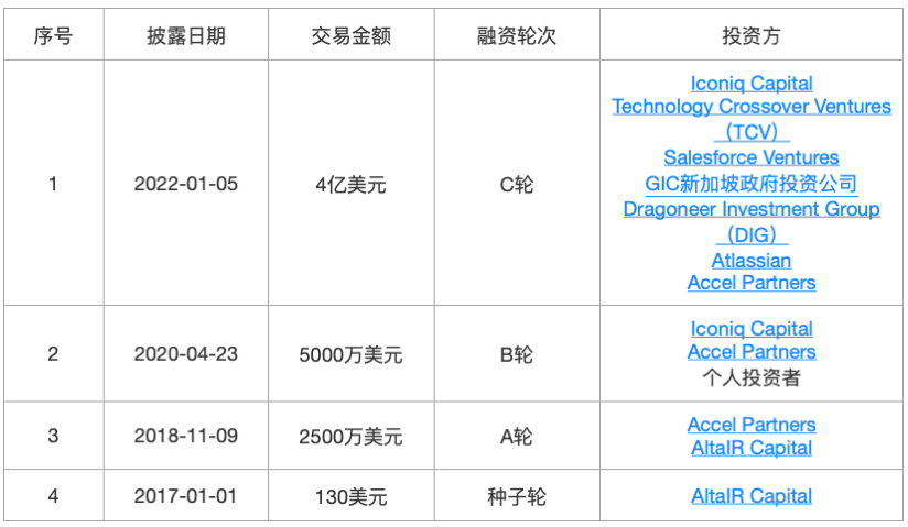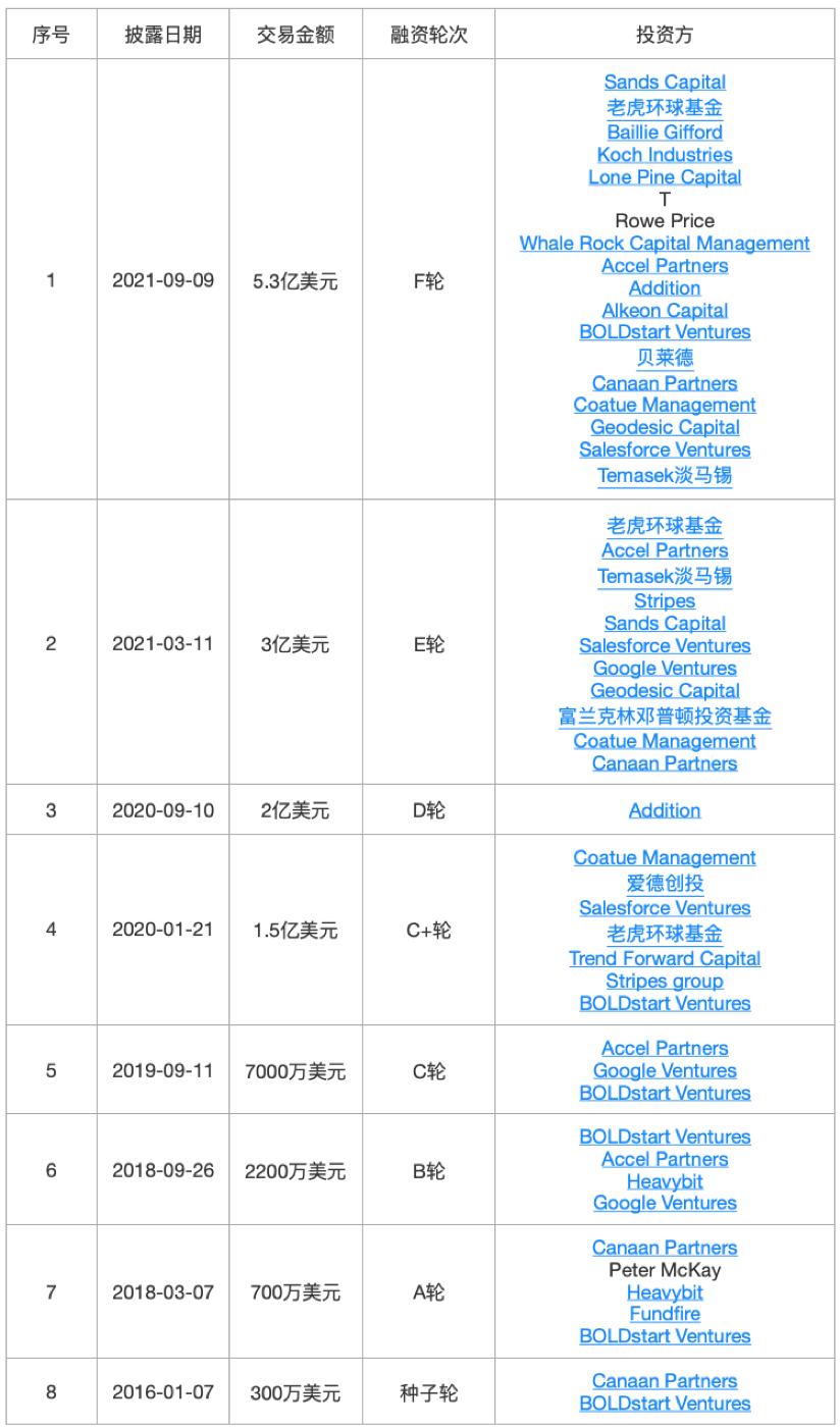 Fivetran成立于2012年,是一家在传统ETL的基础上进行创新的数据整合公司,Fivetran可以连接企业的关键数据源,提取和处理所有数据,然后将其转储到数据仓库(如Snowflake、BigQuery或RedShift),以便在需要时进行SQL访问和进一步转换。2021年9月,Fivetran完成a16z领投的5.65亿美元D轮融资,估值达56亿美元。