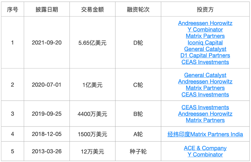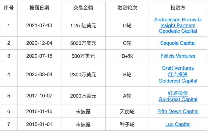 Sourcegraph被称为“代码界的Google”,通过搜索代码,将软件开发和IT运营的各个环节联系起来,让团队能更便捷地写代码,更快地发现和修复Bug,更流畅地进行协作。Sourcegraph于2013年创建,2021年7月,完成了由a16z领投的1.25亿美元D轮融资,估值达到26亿美元,历史股东包括红杉资本、CraftVentures等。