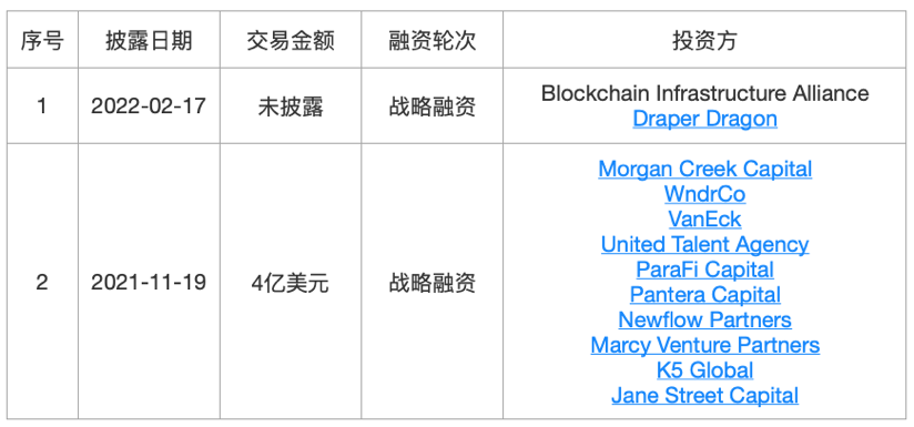 成立于2014年的加密货币交易所Gemini,除了购买、出售和存储加密货币外,Gemini还帮助投资者赚取、消费和了解加密货币,以及在NiftyGateway(一个全资拥有的NFT平台)上创建和收集NFT。2022年2月,Gemini宣布完成了来自BlockchainInfrastructureAlliance和DraperDragon共同投资的战略融资,本轮估值不详,但在上一轮的战略融资中,Gemini的估值达到71亿美元。