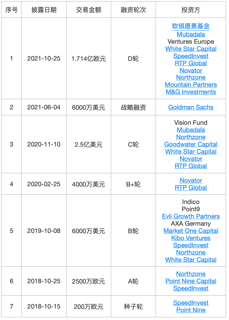 TradeRepublicBankGmbH是一家于2015年成立的德国在线经纪商,通过其移动APP为消费者提供股票、交易所交易基金(ETF)、衍生品和加密货币买卖服务,且不收取佣金。2022年6月,TradeRepublic公布来自OntarioTeachers追加的2.5亿欧元C+轮融资,本轮融资后,估值达到53.66亿美元。