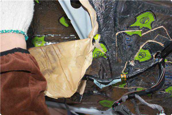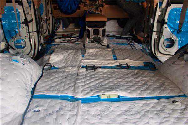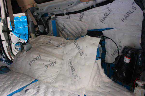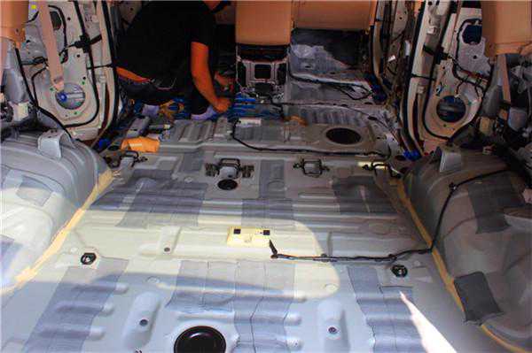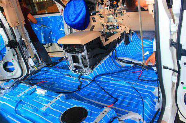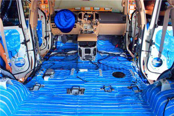 车友这次来个标准型的主动两分频改装,更换前声场喇叭,加装2台功放,一台专业的音频处理器。这么好的音响系统当然少不了全车隔音。