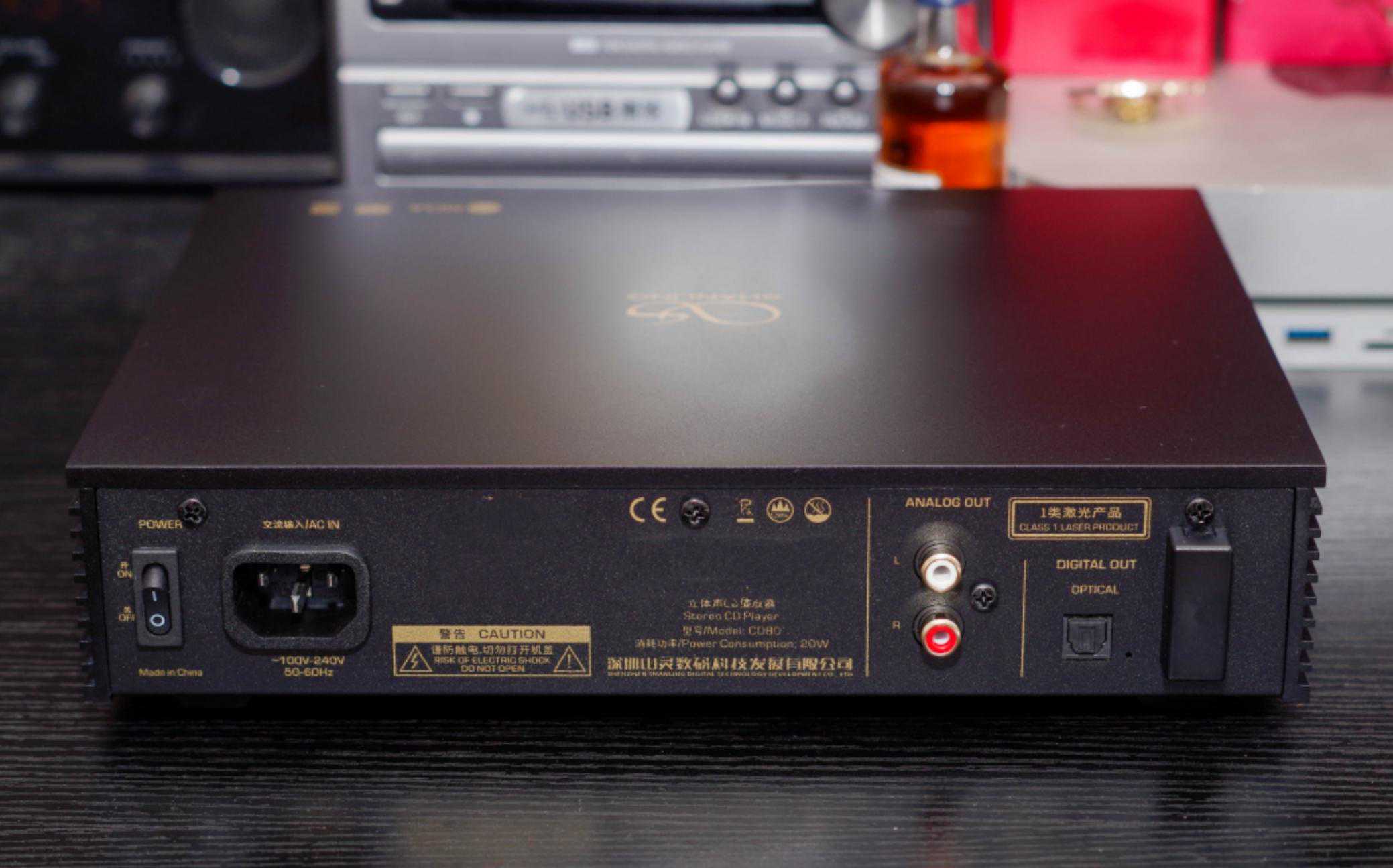 背板是开关和两个输出接口,支持模拟输出和光线输出,也是传统CD播放机的标准配置,不一样的是山灵CD80支持蓝牙功能,可以作为一个蓝牙耳放使用,最右边的突出模块就是蓝牙天线。虽然这款机器主打复古,可是多少要为一些现代化做出一些必要的提升,毕竟也要考虑操作的便利性和实用性。