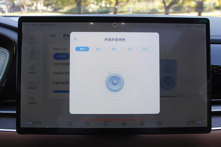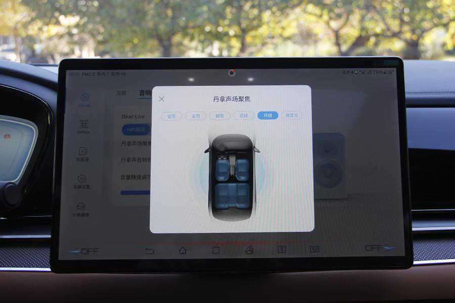从选装包的命名我们就能看出官方这次主推的重点配置当然是HiFi级定制丹拿音响,据了解,比亚迪将汉EV飘洋过海运送到丹拿音响总部丹麦,丹拿首席调音师耗时3个月完成调音,实现了全车搭配12个监听级的扬声器,系统最大功率可达到775W。该套系统还可以进行单独的定制化选择,分别是声场聚焦方式和声音特色方式,其中声音特色方式可选择原声、动感、柔和、演说和自定义,声场聚焦方式可选择全车、主驾、副驾、后排、环绕和自定义。