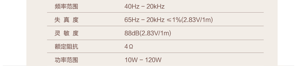 【功率】:功率值是供给箱体与选配放大器时有个大概的参考范围,可以说这只是代表箱子能承受的最大值。例如标注的是100W,当持续输入值超过时,它就可能会爆掉。过大爆掉后的结果就是破噪子,破罐头,噪音而已。普通初烧整个多媒体的120w二分频也就够用了,一般这种音箱自带功放模块,选配放大器那是老烧的事。