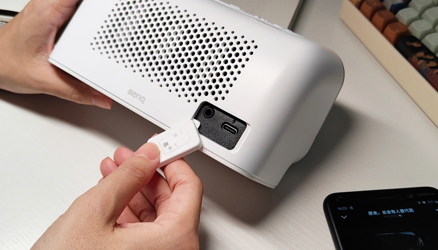 与常见的多媒体音箱不同的是,明基treVoloU音箱的体积十分小巧,放在桌面时并不会占用到多少空间,能提升整体的整洁度。