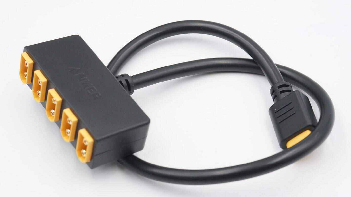 一根为常见的AC电源线,用于给户外电源进行交流充电。