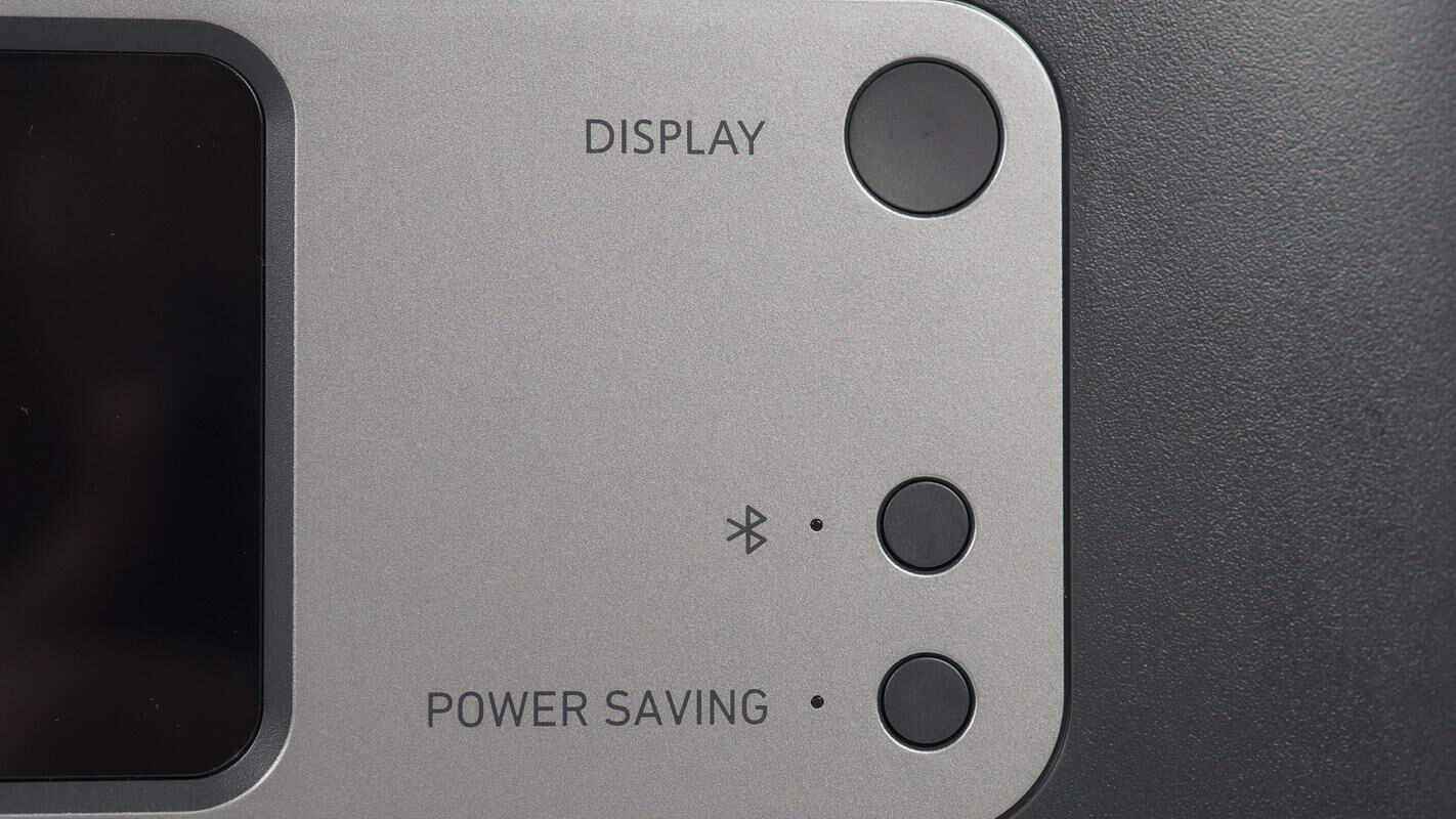 数显屏右侧有对应的开关按钮、蓝牙连接模式按钮和节能模式按钮。