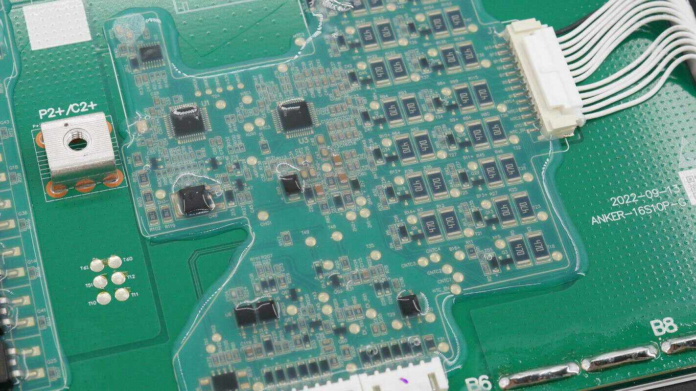 电池负极铜箔焊接大面积铜条增加载流,8颗2512封装的2mΩ取样电阻用于检测电池组输出电流。