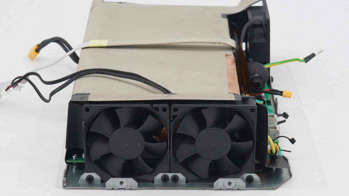 打开绝缘塑料片,内部为双向逆变模块PCBA,固定两块散热片,侧面固定2+1个风扇组成风道用于散热,带走内部热量。双向逆变模块底部也被绝缘麦拉片和导电布包裹。