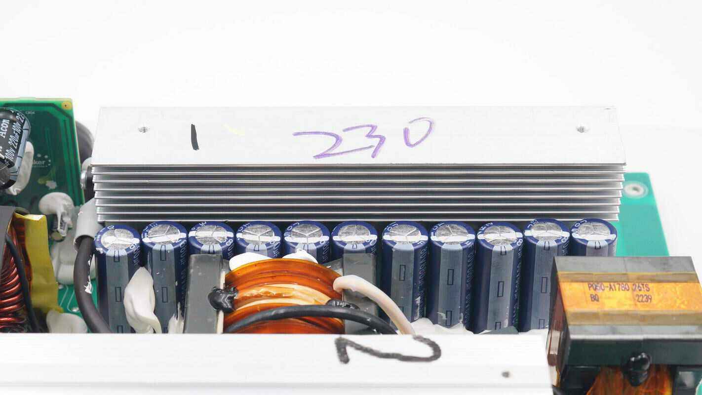 输入端滤波电解电容来自艾华,规格为80V680μF,共计11颗并联。