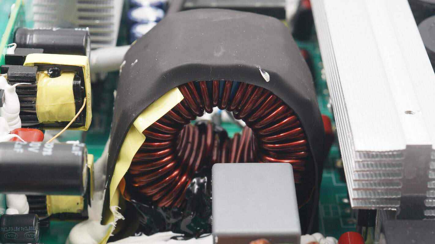 输出滤波电感采用磁环绕制,外套热缩管绝缘。